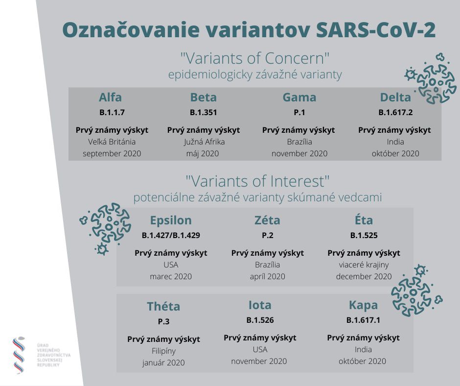 Široký panel medzinárodných expertov preto odporučil jednotlivé varianty radšej pomenúvať písmenami gréckej abecedy – Alfa, Beta, Gama, a tak ďalej. Takéto názvy sú praktickejšie, ľahko vysloviteľné a zjednocujú medzinárodnú diskusiu o variantoch.